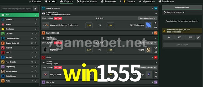 A aposta win1555 oferece aos jogadores a experiência mais conveniente de apostas em eSports!
